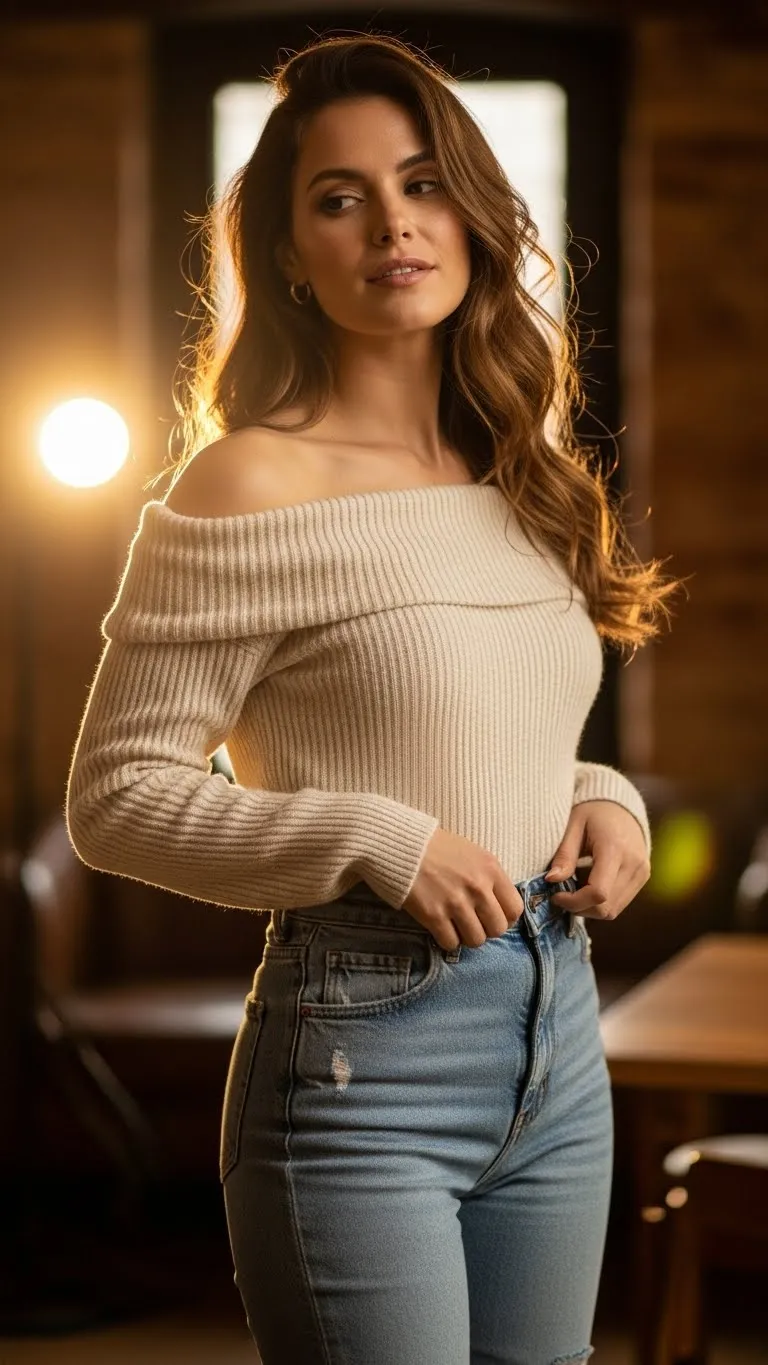 - Off-Shoulder Knit and Jeans