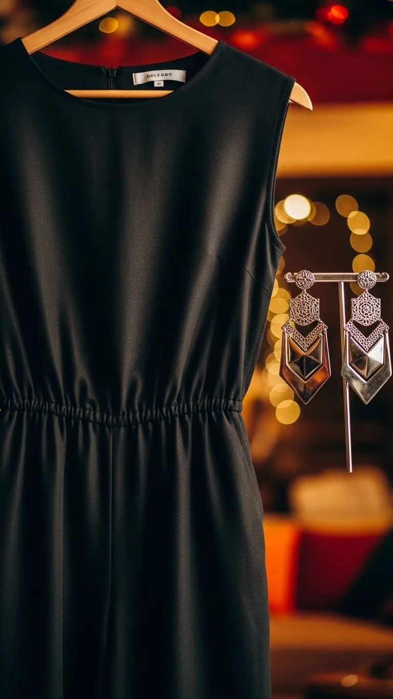 A jumpsuit keeps things simple and sharp. Choose one with a clean waistline and a straight leg. Add oversized earrings to draw the eye upward. If you already own a plain jumpsuit, cinch the waist with a belt from another outfit. Try curling your hair or pulling it into a low bun for balance. You can even wrap ribbon around an old belt buckle to make it look fresh and party-ready.