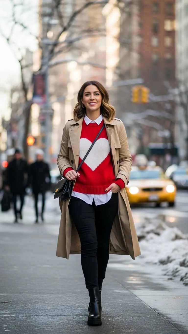 Layering is the secret to a cozy yet polished Valentine sweater look. It adds dimension and keeps you warm.