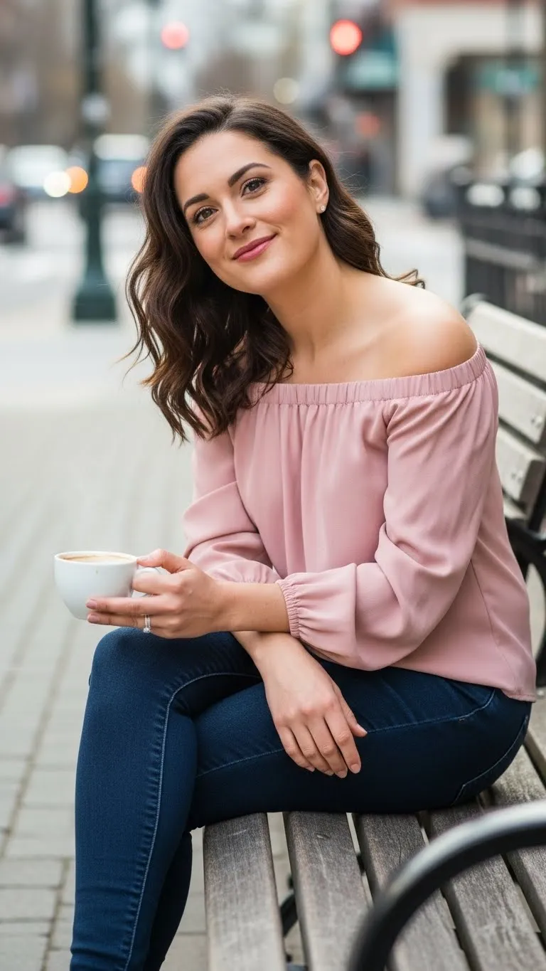 Jeans are the base, but the top sets the Valentine’s tone. Think soft textures, flirty details, and rich colors.