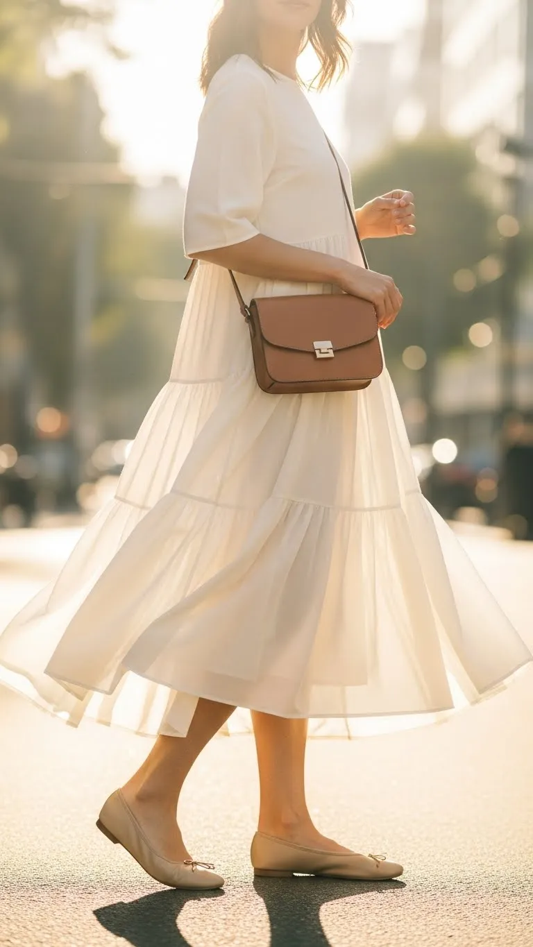 - Tiered Dress with Simple Flats