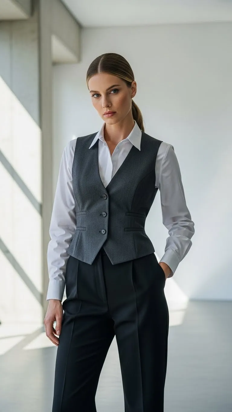 Layering a vest over a crisp shirt adds structure quickly and makes the outfit feel intentional. The vest creates clean vertical lines, which helps the outfit feel sharp without trying too hard. Neutral vests in gray, black, or beige are easiest to style and often easy to find secondhand. Men’s vests work well when slightly tailored at the waist or worn open for a relaxed feel. Let the shirt sleeves peek out and roll them once for softness. Pair this combination with straight-leg trousers or dark denim to keep proportions balanced. Footwear like loafers, ankle boots, or simple flats keeps the outfit grounded. If the vest feels plain, add a subtle chain necklace under the collar. This look works well for casual dinner dates or daytime Valentine plans and feels confident without relying on bold pieces.