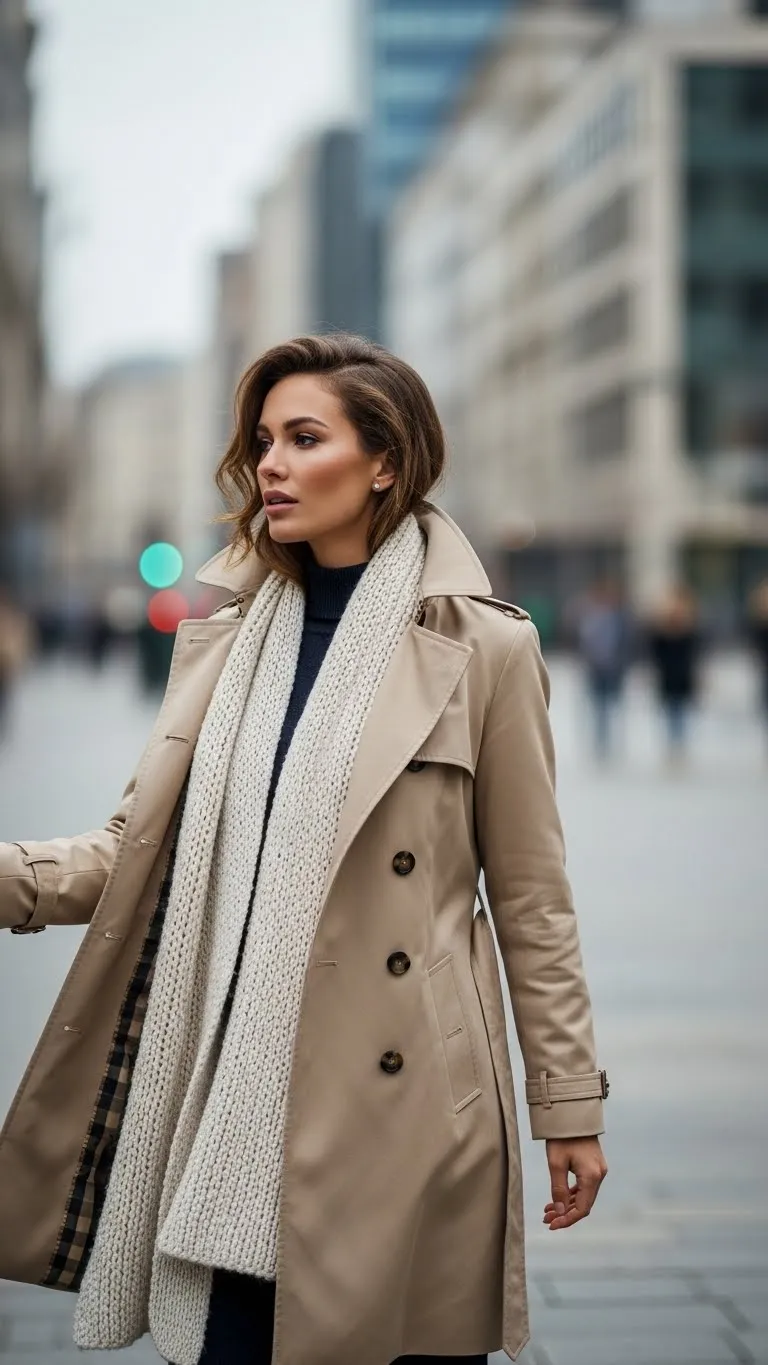 1. Trench Coat with Knit Scarf