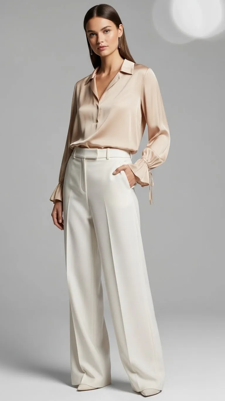 1. Structured Pants with a Soft Blouse