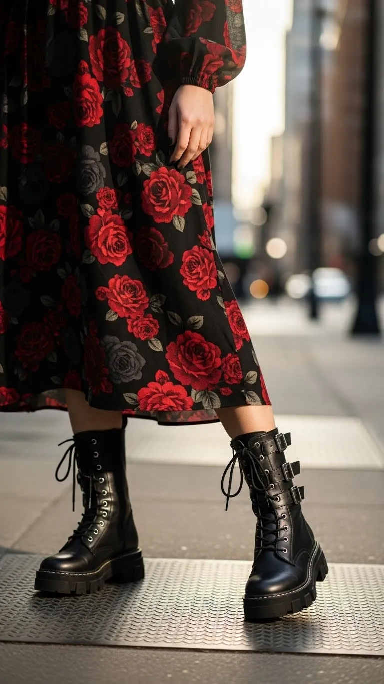 - Floral Dress With Combat Boots
