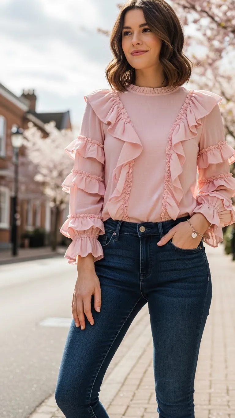 - Ruffled Blouse With Skinny Jeans
