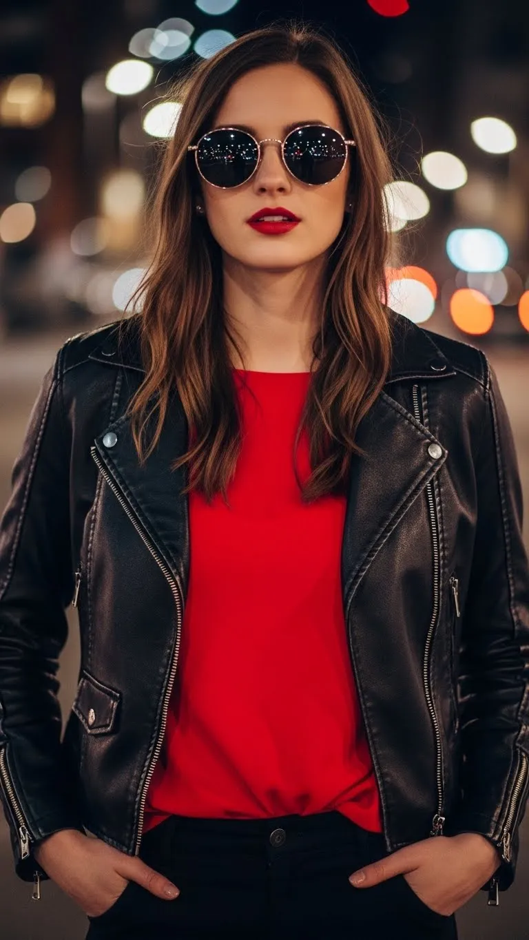 You don’t need a red dress to join the theme. Start with black basics. Black jeans, black top, black shoes. Add red through accessories. A scarf, bag, or earrings work well. Accessories cost less and feel less risky. This outfit works for evening plans or casual dinners. Keep textures interesting. Mix denim, knit, and leather. Makeup can carry the color too. A red lip is optional but effective. You can wear this look again anytime by changing the accent color. It’s practical and budget-smart.