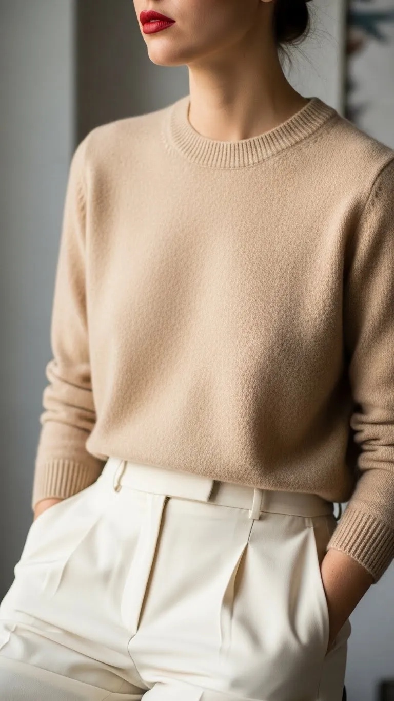 - Neutral Outfit With Red Lip