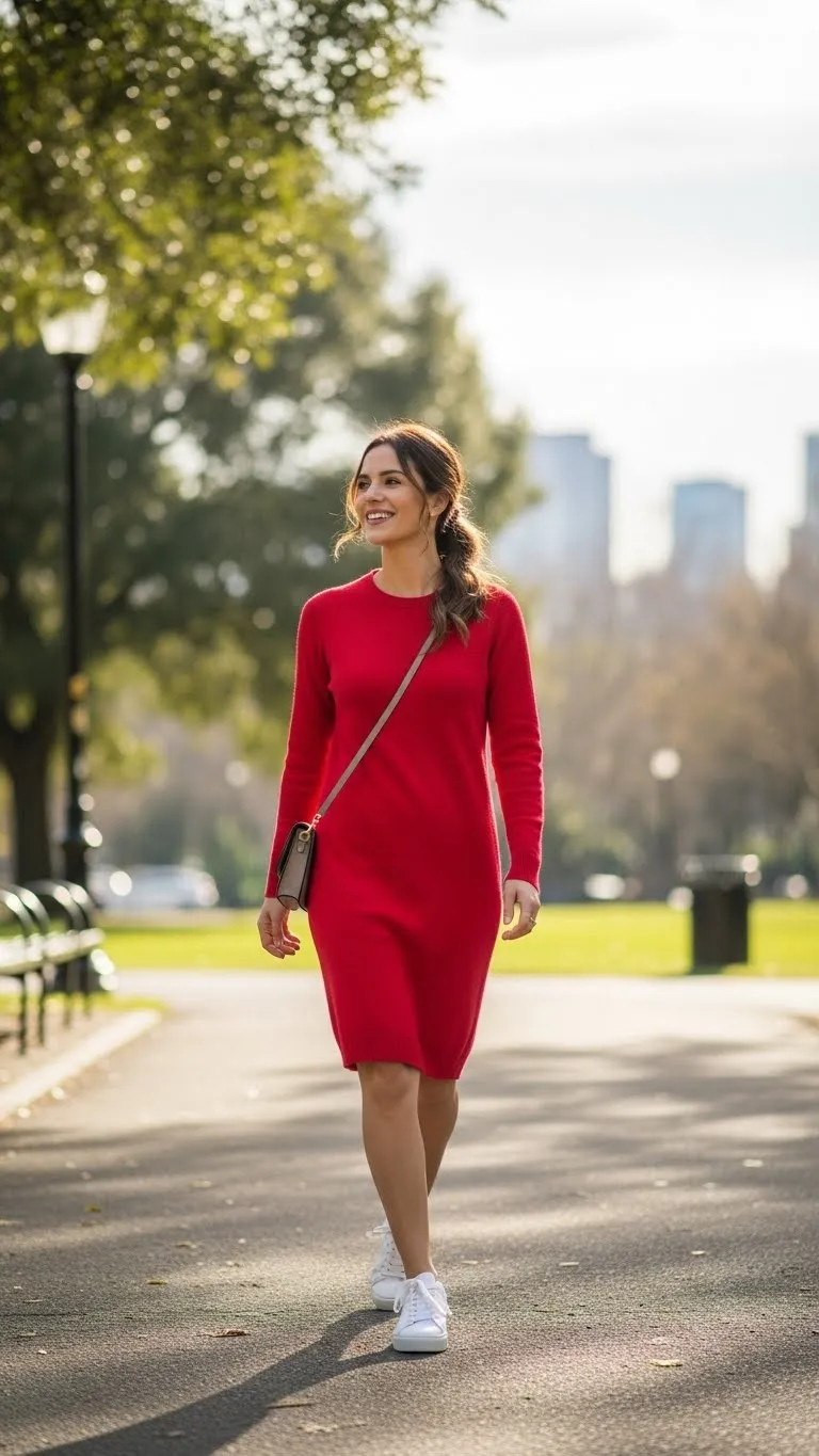 - Red Sweater Dress With Sneakers